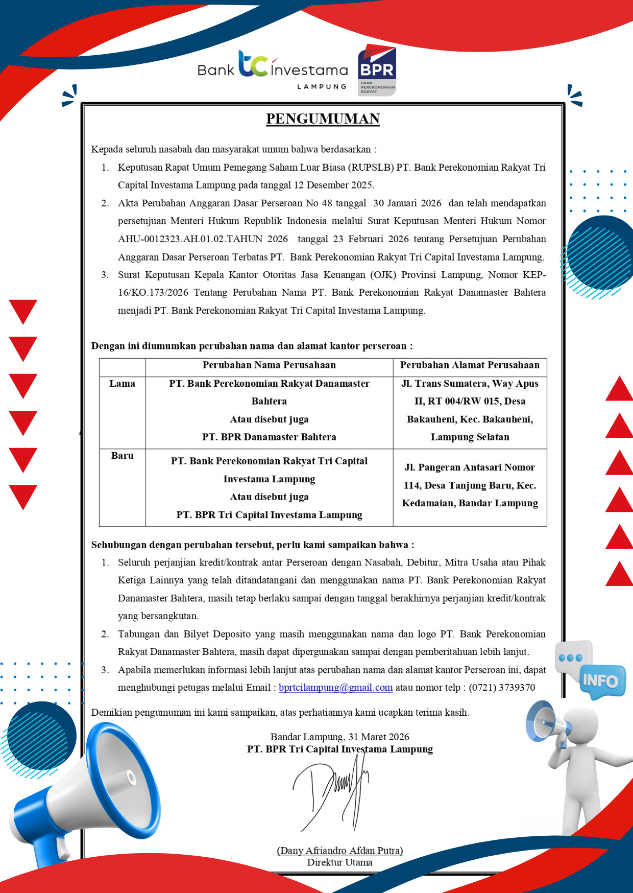 Bagi anda yang membutuhkan dana, penyaluran kredit secara produktif dan/atau modal kerja akan kami layani pada hari dan jam kerja baik langsung di kantor Bank Dana Master Bahtera atau melalui permohonan kredit pada web kami ini. Dengan melengkapi persyaratan, permohonan kredit Saudara akan segera kami analisa dan tidak lebih dalam 7 (tujuh) hari kerja permohonan kredit Saudara akan mendapat jawaban.